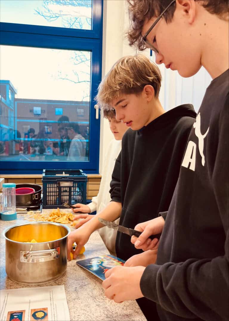 Theorie ist wichtig – aber manchmal ist Praxis einfach besser. Im Rahmen des Spanischkurses wurde die schuleigene Küche kurzerhand zum Lernort umfunktioniert. Gemeinsam mit den Schülerinnen und Schülern ging es „raus aus dem Klassenzimmer und ran an den Herd“. Mit viel Engagement und guter Laune bereiteten die Lernenden typische spanische
